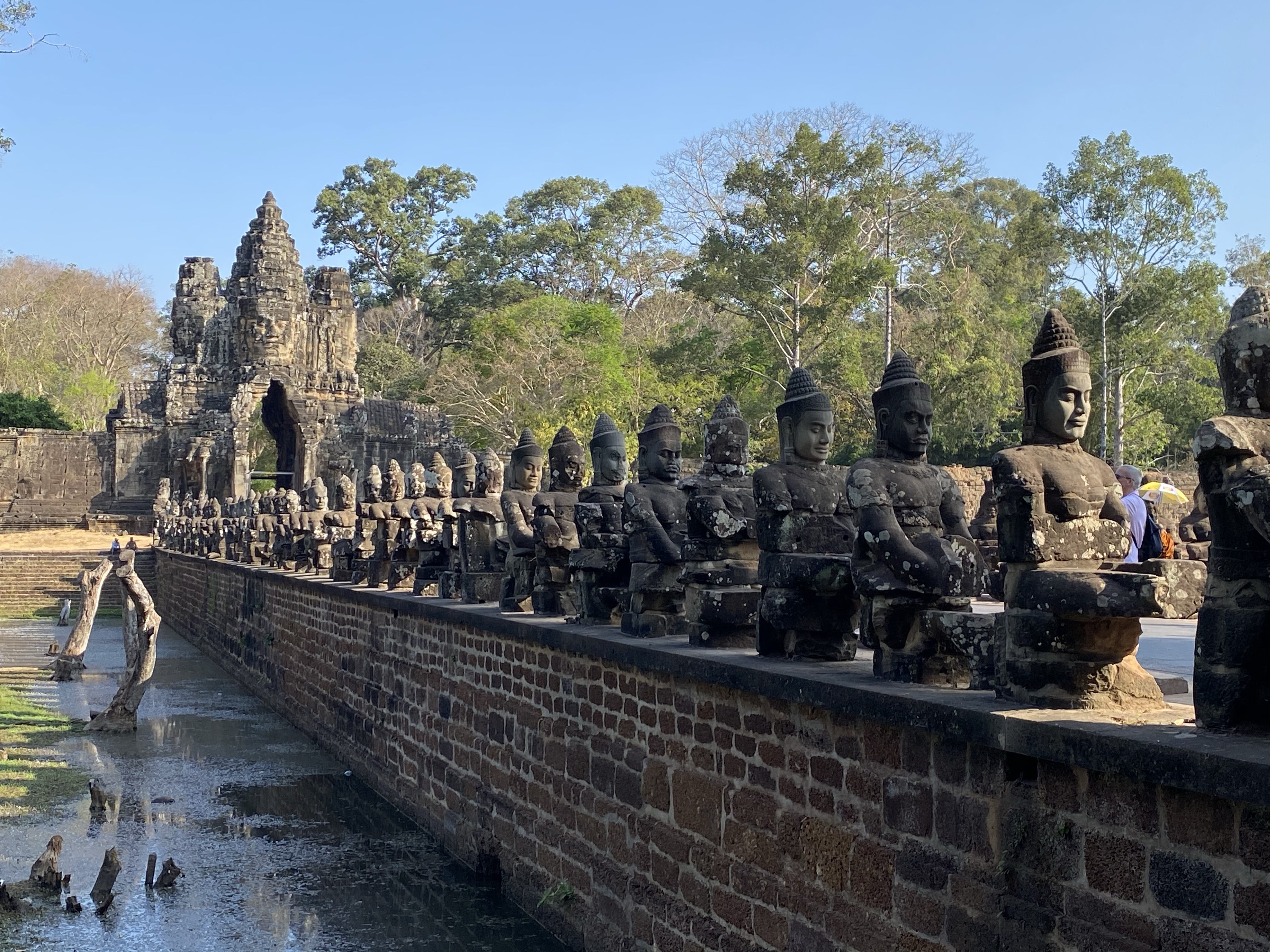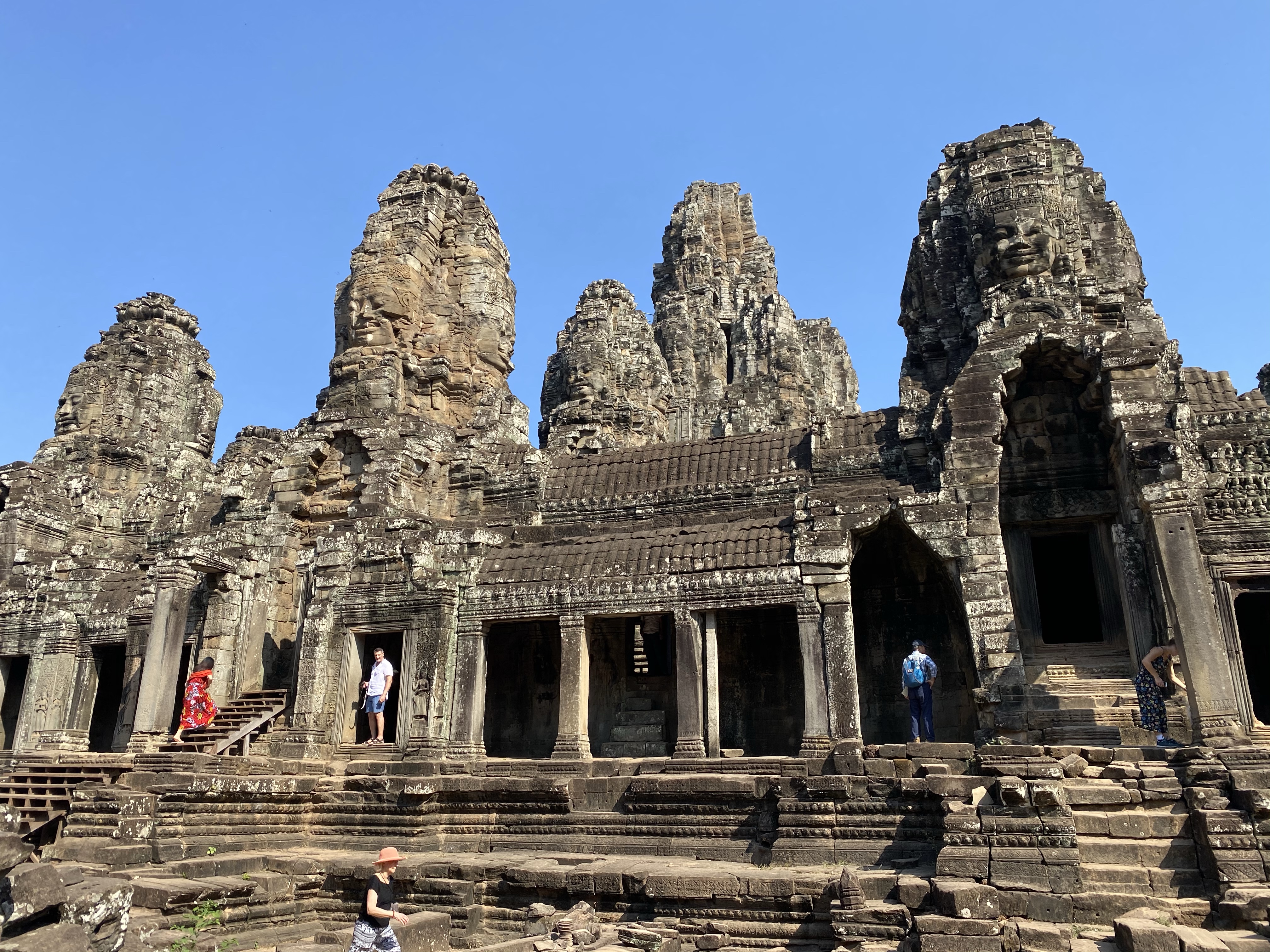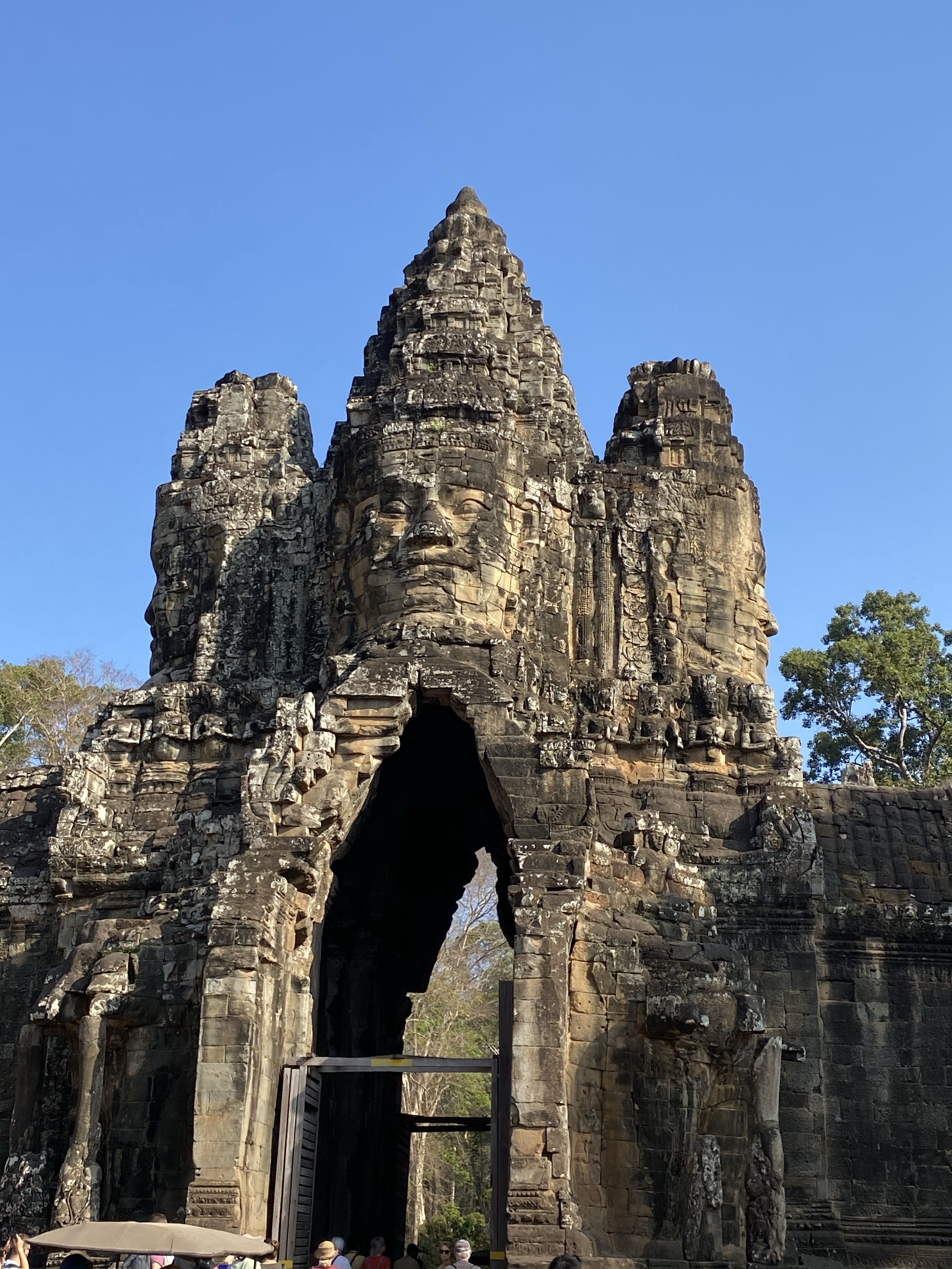 We started the day early (well early for us these last two weeks) and met our guide Tann at 8 am, for a private tour through the Angkor Wat temples. It’s hard to succinctly blog about a day with centuries of history and visual delights. Many of the temples began as Buddhist temples and, as kings were turned over, became Hindu temples. Therefore, some of the history and repair was not maintained. We climbed among broken buildings, monkeys, trees and annoying Instagram Influencers to get the best looks at these feats of manmade power. Moats created interesting treks, and were punctuated with purple lily pad flowers.